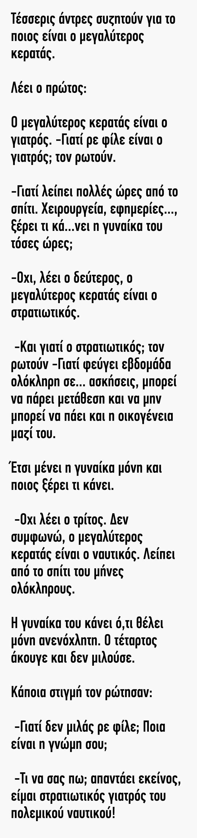 Απίστευτο γέλιο! Τέσσερις άντρες συζητούν για το ποιος είναι ο μεγαλύτερος κερατάς…