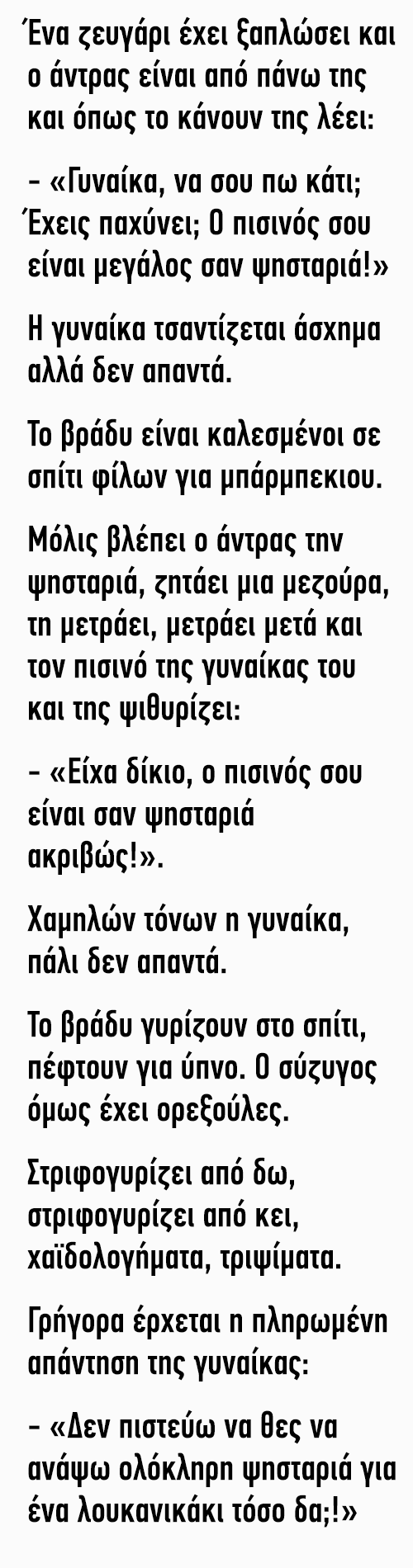 Πολύ γέλιο! “Γυναίκα να σου πω κάτι, έχεις παχύνει…”