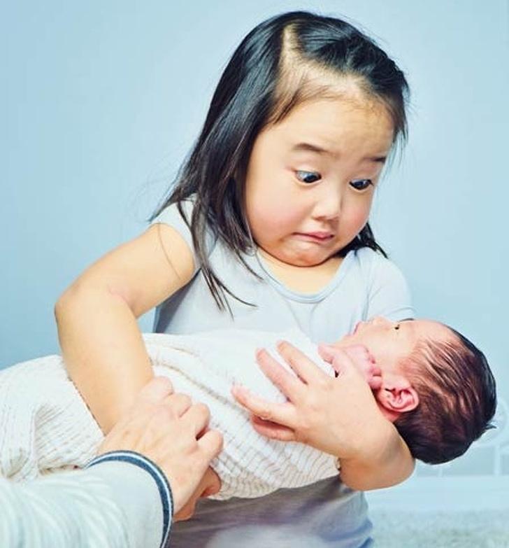 1. “Η αντίδραση της κόρης μου όταν κράτησε πρώτη φορά την αδελφή της. Τελικά ήταν πιο βάρια από τις κούκλες της. “