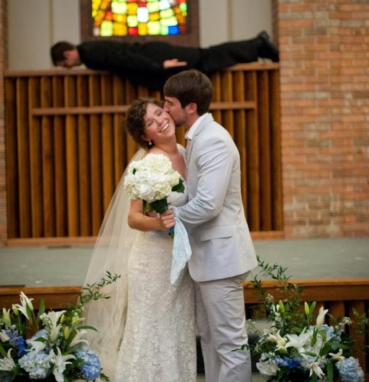 12. “Η φωτογραφία του γάμου του αδελφού του φίλου μου με έναν ιερέα ντεκόρ στο παρασκήνιο”.