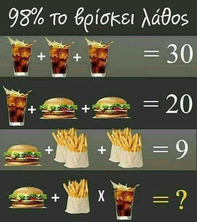 Μια μαθηματική ακολουθία, που χρησιμοποιεί μπέργκερ, πατάτες και… αναψυκτικό για να δώσει το παράδειγμα και τον δρόμο προς τη λύση, είναι αυτή στην οποία καλείστε να βρείτε την απάντηση.