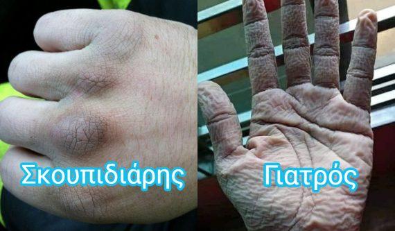 Αυτό είναι το χέρι ενός γιατρού μετά την αφαίρεση των ιατρικών γαντιών του μετά από 10 ώρες που τα φορούσε.