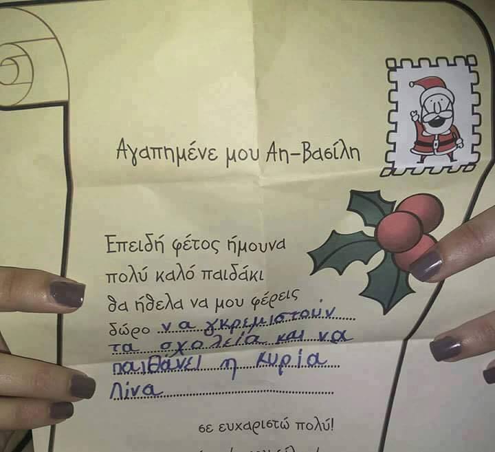 Χαμός γίνεται στα social media με το γράμμα που (υποτίθεται – δεν γίνεται να διασταρωθεί προς το παρόν) ότι έγραψε ένα παιδί στον Άγιο Βασίλη.