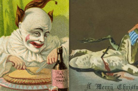 Χριστουγεννιάτικες κάρτες Βικτωριανής Εποχής. Ανατριχιαστικές ευχετήριες κάρτες με πεθαμένα πουλιά, βασανιστήρια και βάτραχους δολοφόνους, που μόνο Χριστούγεννα δεν θυμίζουν. Οι κάρτες σήμερα έχουν κάποιον Άγιο Βασίλη ή στολισμένα δέντρα αντίθετα με αυτές της Βικτοριανής εποχής ήταν παράξενες ως και τρομακτικές.
