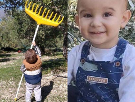 Το προκομένο αγοράκι παρόλο που είναι μόλις 2 ετών έχει μάθει να καθαρίζει τις ελιές και να τις βάζει μέσα στα τσουβάλια, να στρώνει τα πανιά κάτω από τα ελαιόδεντρα ακόμη και να μαζεύει λαχανικά από τον κήπο.