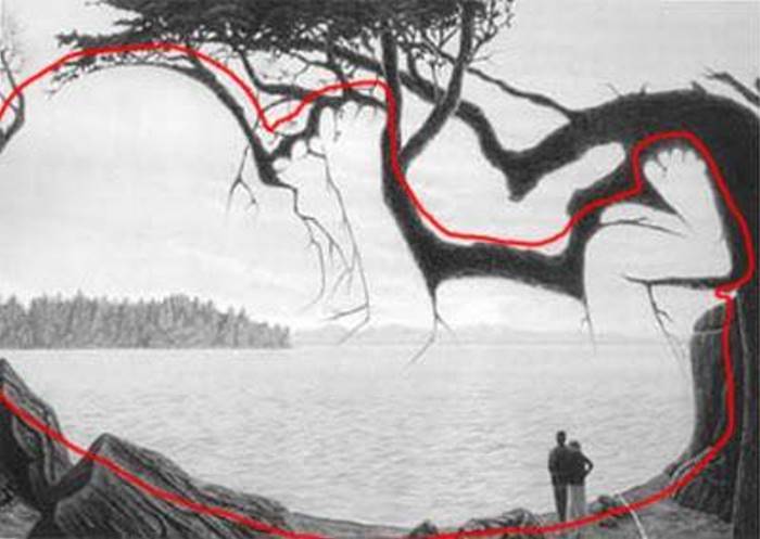 Κοιτάξτε τον παρακάτω πίνακα: τίποτα δεν είναι ιδιαίτερα μυστηριώδες. Απλά είναι ένα κανονικό ζευγάρι που στέκεται κάτω από ένα δέντρο στην άκρη μιας λίμνης, όμως και κάποιος άλλος είναι κρυμμένος εκεί …