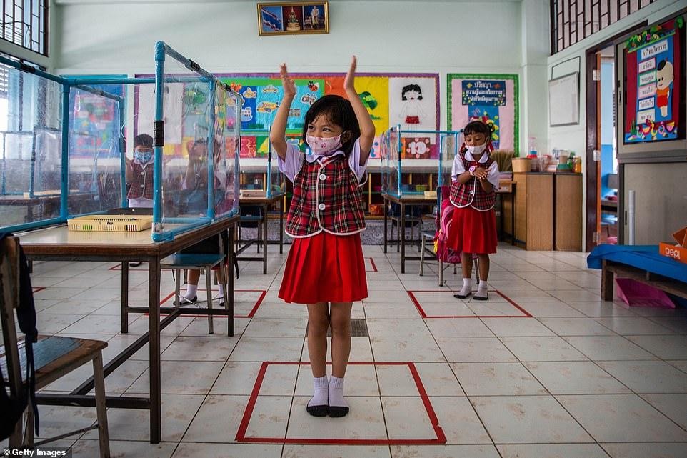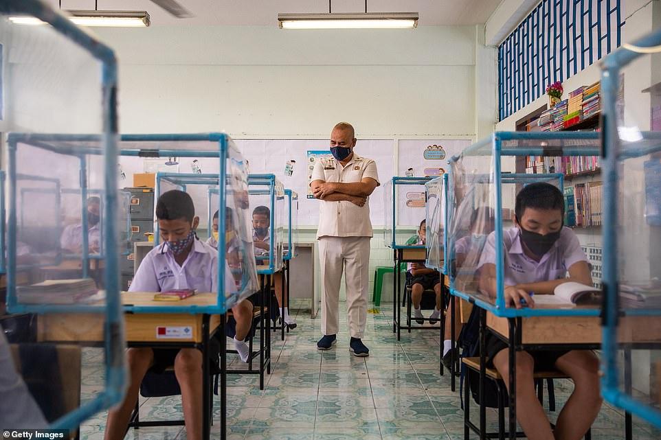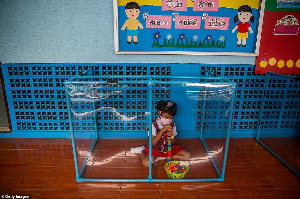Πλέον όμως, τα παιδιά κάνουν μάθημα μέσα σε αυτά, έτσι ώστε να είναι προστατευμενα από τον κορονοϊό. Κάποια σχολεία της Μπανγκόγκ, μάλιστα, ζήτησαν από τους μαθητές να περιοριστούν σε καραντίνα 15 ημερών πριν επιστρέψουν στο σχολείο, για να είναι βέβαιο ότι κανείς δεν θα μεταφέρει τον ιό.