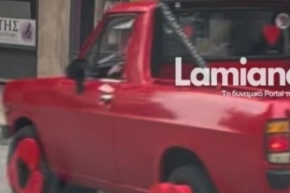 Με ένα περίεργο θέαμα ήρθαν αντιμέτωποι οι κάτοικοι της Λαμίας σήμερα 14/02 του Αγίου Βαλεντίνου. Αναλυτικότερα , στους δρόμους της πόλης έκανε την εμφάνιση του ένα κόκκινο αγροτικό αυτοκίνητο, που ήταν στολισμένο με καρδιές στις ρόδες και βαμμένο στα χρώματα του έρωτα.