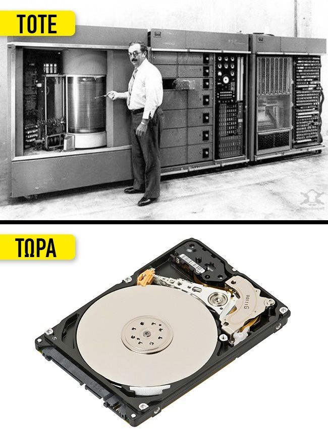 60 χρόνια πριν, ο πρώτος σκληρός δίσκος παρουσιάστηκε στο κοινό. Ζύγιζε πάνω από 6,4 κιλά και είχε μνήμη μόλις 5 MB. Σήμερα, ακόμη και τα πιο απλά κινητά, που ζυγίζουν 350 γραμμάρια, μπορούν να αποθηκεύσουν τα 10πλάσια δεδομένα!