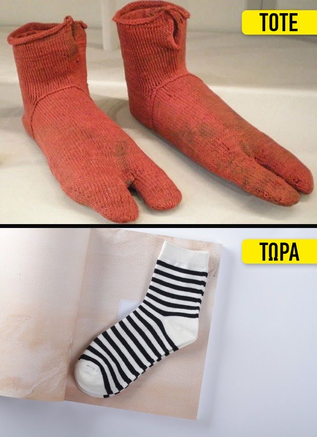Οι κάλτσες πρωτοεμφανίστηκαν στην Αίγυπτο τον 3ο αιώνα μ.Χ. Το παράξενο κενό ανάμεσα στα δάχτυλα, οφείλεται στο γεγονός ότι φορούσαν τις κάλτσες μέσα από τα σανδάλια. Σήμερα είναι δύσκολο να φανταστούμε τις ζωές μας χωρίς αυτό το αξεσουάρ. Αλλά ακόμα χειρότερα, φανταστείτε κάποιον να τις φορά με σανδάλια!