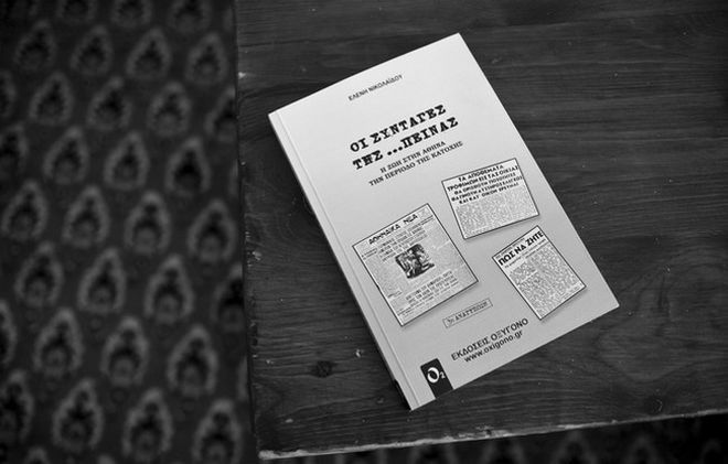 «Το βιβλίο είναι μέρος μίας μεγάλης έρευνας που έκανα στο Πάντειο Πανεπιστήμιο. Το πεδίο έρευνας ήταν η ζωή των Αθηναίων την περίοδο της Κατοχής. Οι μόνες πηγές που υπήρχαν εκείνη την εποχή και σε καθημερινή βάση ήταν οι ημερήσιες εφημερίδες. Έτσι πήρα την “Βραδυνή”, τα “Αθηναϊκά Νέα” και την “Καθημερινή” και διάβασα 6.000 σελίδες εφημερίδων αποδελτιώνοντας και μελετώντας τα στοιχεία της καθημερινότητας των Αθηναίων. Είναι εντυπωσιακά τα στοιχεία που έχω συλλέξει».