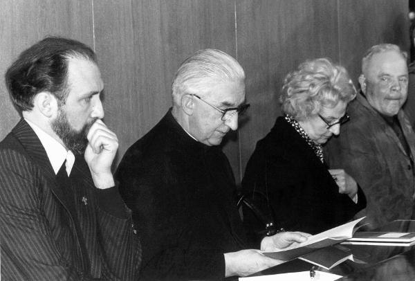 (αριστερά προς τα δεξιά) Αλτ, Φρ. Ρεντς, Άνα και Γιόζεφ κατά τη διάρκεια της δίκης.