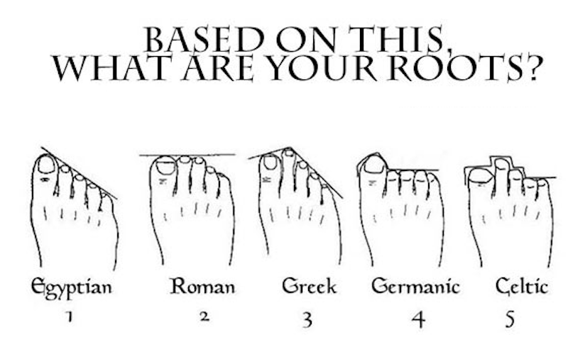 Το «αιγυπτιακό πόδι» είναι αυτό στο οποίο από το μεγάλο δάχτυλο μέχρι το μικρότερο υπάρχει μια διαγώνιος ευθεία με το μεγάλο δάχτυλο μακρύτερο από όλα.