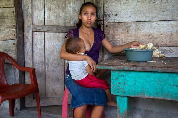 Η 15χρονη Aracely κρατάει το γιο της. Η ίδια είναι ένα από τα μισό εκατομμύριο κορίτσια της Γουατεμάλας που παντρεύονται και κάνουν παιδί προτού μπορέσουν νόμιμα να ψηφίσουν, να πιουν αλκοόλ ή να αγοράσουν τσιγάρα. Σύμφωνα με στοιχεία του ΟΗΕ για το 2012, 30% των γυναικών 20-24 ετών στη χώρα παντρεύτηκαν πριν τα 18 και αυτό το ποσοστό είναι ενδεχομένως ακόμα υψηλότερο στις αγροτικές περιοχές.