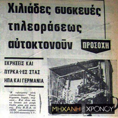 «Μην αφήνετε τις τηλεοράσεις να υπερθερμαίνονται και μακριά από τα παιδιά σας», προειδοποιούσε ο τύπος το 1969. Η νέα συσκευή είχε μόλις μπει στα πρώτα ελληνικά νοικοκυριά, οι χρήστες δεν είχαν μεγάλη εξοικείωση και τα απρόοπτα ήταν πολλά. Η Ελλάδα ήταν μία από τις τελευταίες ευρωπαϊκές χώρες στις οποίες έφθασε η τηλεόραση. Η πρώτη εκπομπή σήματος έγινε στις 23 Φεβρουαρίου 1966 και τα προγράμματα απευθύνονταν σε ελάχιστους κατόχους δεκτών τηλεόρασης. Το 1966 υπήρχαν στην Αθήνα μόνο 1.000 τηλεοράσεις. Για τους Έλληνες ήταν μια ασυνήθιστη ηλεκτρική συσκευή που κάποιους τους τρόμαζε.