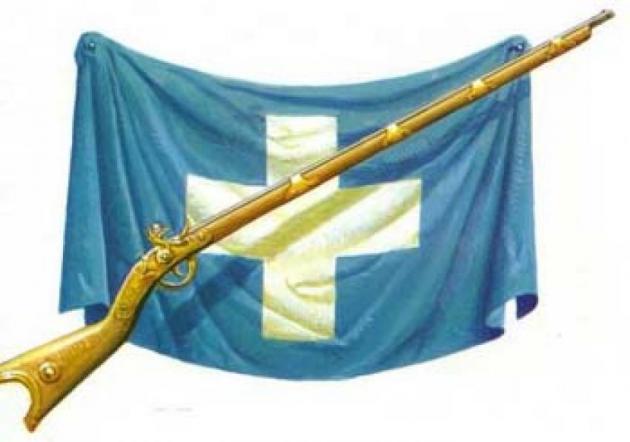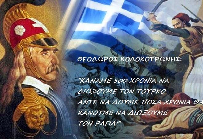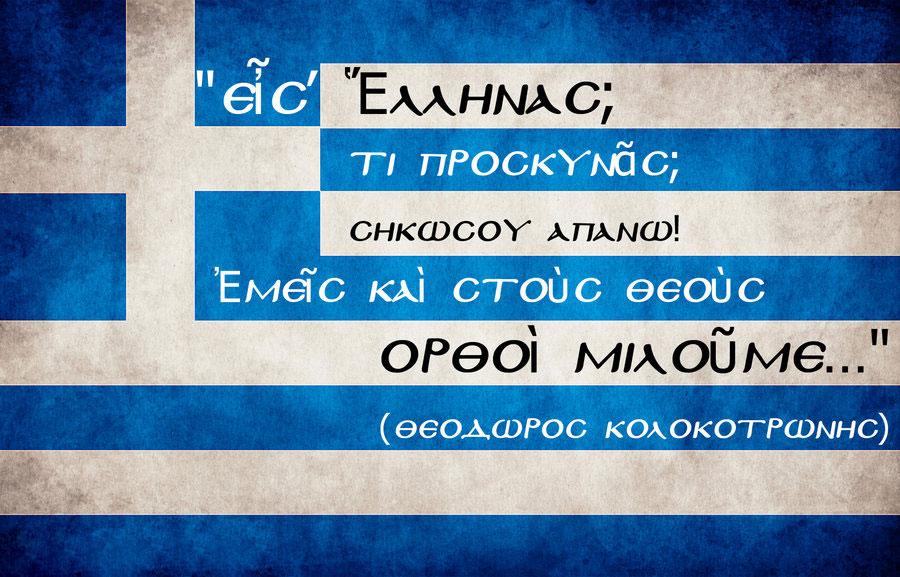 Με το λευκό υποδηλώνεται ο καθαρός, άμωμος και αγνός σκοπός των Ελλήνων που μοναδική τους επιδίωξη ήταν η απελευθέρωση και η ανεξαρτησία του έθνους και η απαλλαγή του από την πολύχρονη σκληρή τυραννία. Εξάλλου, σύμφωνα με την επικρατέστερη εκδοχή, οι εννέα κυανόλευκες ταινίες αντιπροσωπεύουν τις εννέα συλλαβές της φράσης «Ελευθερία ή Θάνατος», που ήταν και ο όρκος των παλικαριών της Επαναστάσεως».