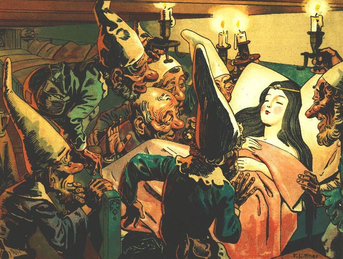 Ούτε το μήλο του παραμυθιού όμως φαίνεται πως ήταν έμπνευση των αδερφών Γκριμ. Την ίδια περίοδο λεγόταν ότι ένας ηλικιωμένος δηλητηρίαζε παιδιά με δηλητηριασμένα φρούτα τα οποία πίστευε ότι έκλεβαν τους καρπούς του.