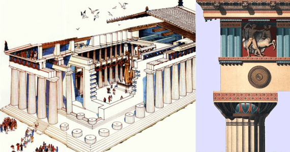 Και το τρίτο εντοπίζεται στις κολώνες του κτίσματος, οι οποίες δεν τοποθετήθηκαν μονοκόμματες, αφού οι αρχαίοι Έλληνες ήξεραν πως για να αντέξουν στους κραδασμούς της γης, θα έπρεπε να τοποθετηθούν σε φέτες, τέλεια εφαρμοσμένες η μία πάνω στην άλλη.