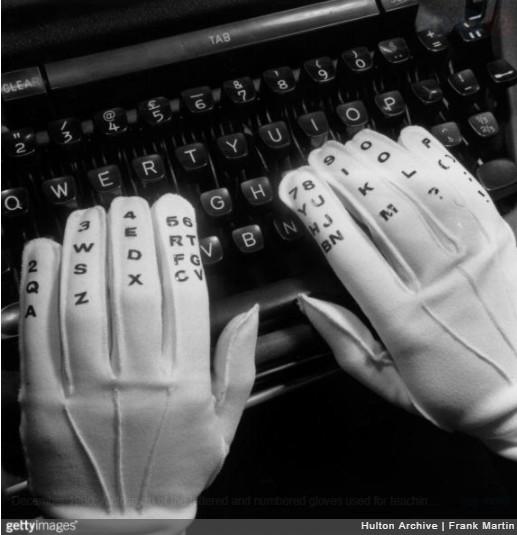 Ειδικά αριθμημένα γάντια που χρησιμοποιούνταν για την διδασκαλία της πληκτρολόγησης, ΗΠΑ, 1961