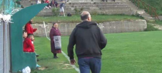 Μια γιαγιά μπήκε στο γήπεδο και άρχισε να διαμαρτύρεται για τη φασαρία που γινόταν.