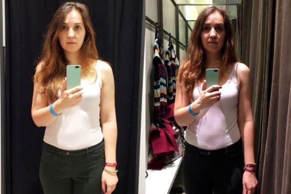 Επισκέφθηκε λοιπόν 11 διαφορετικά δοκιμαστήρια, που άνηκαν σε μαγαζιά μεγάλων αλυσίδων, με σκοπό να συγκρίνει την εικόνα της στον καθρέφτη. Φόρεσε από το σπίτι ένα άσπρο μπλουζάκι κι ένα τζιν και με την πρόφαση ότι θέλει να δοκιμάσει ρούχα, έβγαζε την σιλουέτα της φωτογραφία στα δοκιμαστήρια.