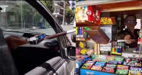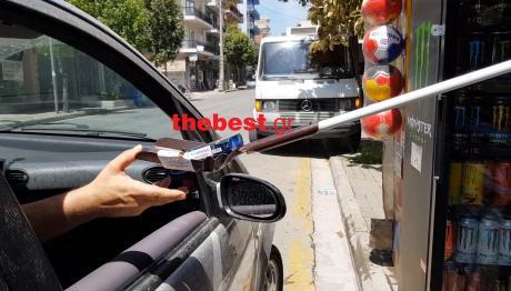 Κάπως έτσι «εφευρέθηκε» το… έξυπνο τηλεσκοπικό φτυάρι που εξυπηρετεί από το εσωτερικό του περιπτέρου, οδηγούς ΙΧ αυτοκινήτων που σταθμεύουν για λίγο στη δεξιά πλευρά της Γούναρη στην Πάτρα και στο κατερχόμενο ρεύμα της.