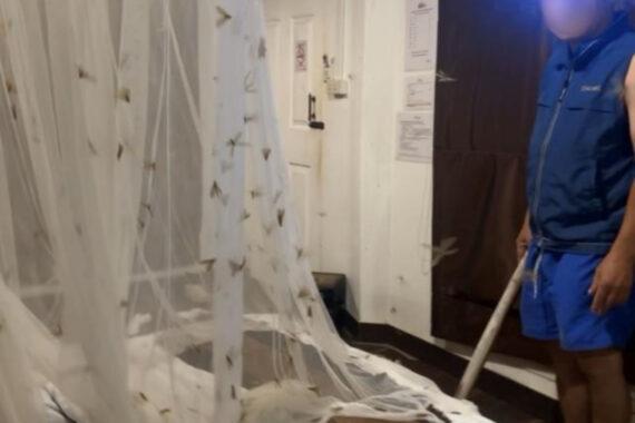 Το βίντεο δείχνει ένα τεράστιο σμήνος εντόμων να προσπερνά το κρεβάτι τους και την προστατευτική κουνουπιέρα, δημιουργώντας ένα πραγματικά ανησυχητικό θέαμα.
