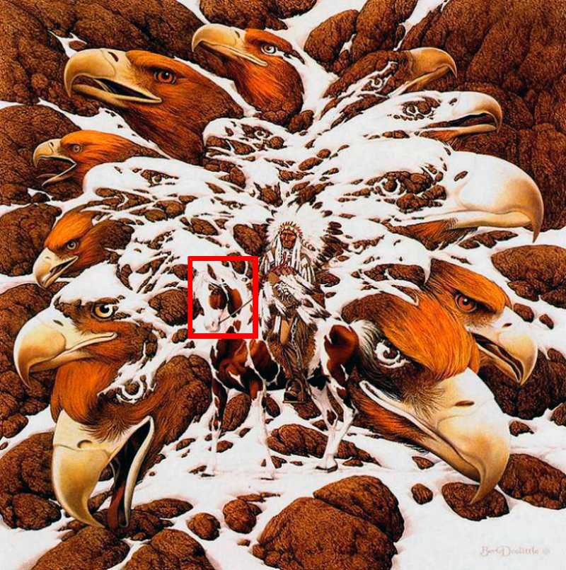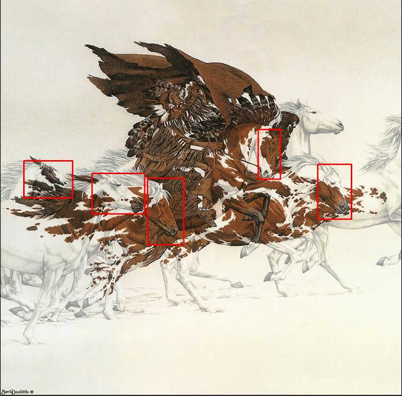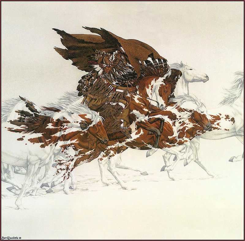 Η καλλιτέχνης Bev Doolittle ζωγράφισε τον παρακάτω πίνακα με τίτλο «Pintos», το 1975.