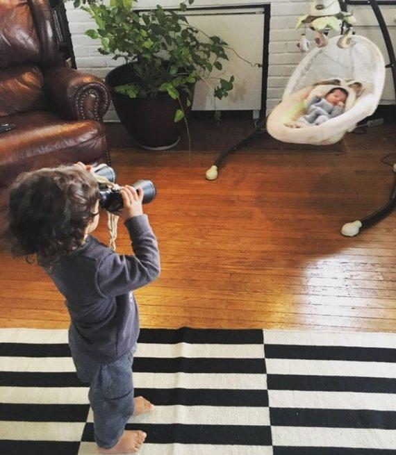 Οι γονείς του, έφεραν το αδερφάκι του στο σπίτι και του είπαν να πλησιάσει το παιδί, πιο κοντά, για να γνωριστούν καλύτερα. Φαίνεται όμως πως ο πιτσιρικάς της φωτογραφίας δεν ήταν έτοιμος για τόσο στενή επαφή. “Θέλετε να το δω καλύτερα;” σκέφτηκε “θα πάρω τα κιάλια μου!”
