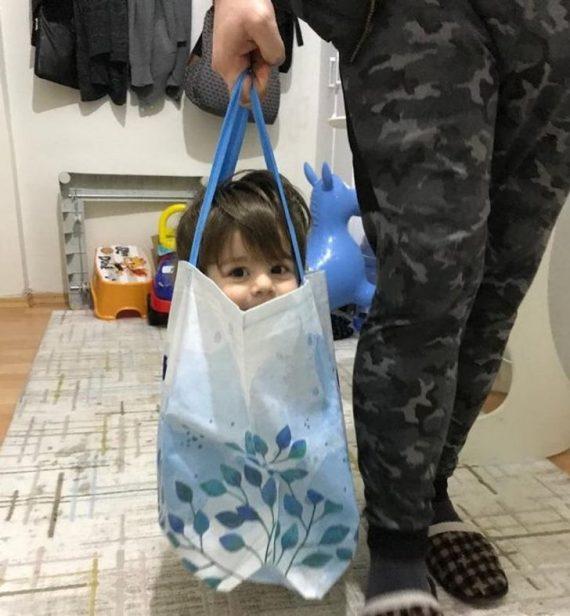 Η μαμά θα με πάρει θέλει δεν θέλει μαζί της στη βόλτα, σκέφτηκε. Και αφού η μαμά φάνηκε ανένδοτη, το παιδί σκέφτηκε να κρυφτεί στη τσάντα της! Πολύ έξυπνο!