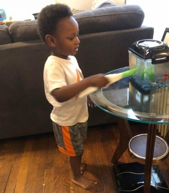 Τα παιδιά ξέρουν να μοιράζονται. Η απόδειξη είναι ο παρακάτω μπόμπιρας, που αποφάσισε να μοιραστεί το φαγητό του με τα ψάρια του.