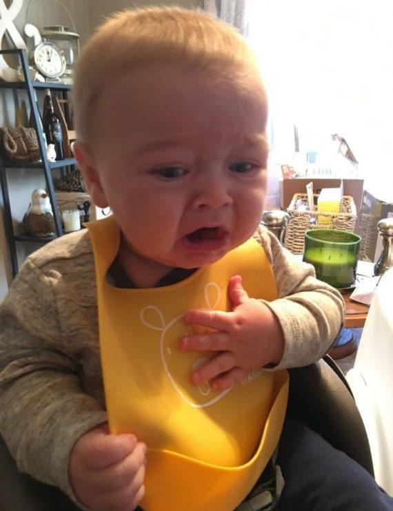 Και επειδή οι γονείς του, του έκαναν το χατίρι, αφού την φόρεσε κατάλαβε ότι δεν ήταν και η καλύτερη ιδέα και ξεκίνησε να κλαίει από τα νεύρα του! Μάλλον από τότε και στο εξής, ξεκίνησε να εμπιστεύεται περισσότερο την κρίση του μπαμπά και της μαμάς.