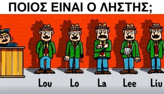 «Νομίζουμε πως ο ληστής είναι ένας από τα 5 αδέρφια: Lou, Lo, La, Lee, or Liu” είπε ο αστυνομικός. «Τους φέραμε ήδη εδώ. Ρίξτους μία ματιά και πες μας ποιος νομίζεις πως είναι ο ληστής.»