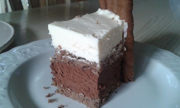 Μους λευκης σοκολατας 360 γρ λευκη κουβερτουρα 100 γρ κρεμα γαλακτος 500 γρ κρεμα γαλακτος χτυπημενη σε παχυρευστη μορφη σαν γιαουρτι. Βαζουμε σε ενα κατσαρολακι την λευκη κουβερτουρα με τα 100 γρ κρεμα γαλακτος σε μετρια φωτια. Μολις λιωσει η σοκολατα βγαζουμε απο την φωτια. ( Δεν πρεπει να ζεσταθει πολυ γιατι χαλαει η λευκη κουβερτουρα). Ριχνουμε στο μειγμα κουταλια κουταλια την κρεμα γαλακτος σε παχυρευστη μορφη και ενωνουμε απαλα. Συναρμολογηση Βαζουμε ενα τσερκι 30 εκ στον δισκο και τοποθετουμε το πρωτο παντεσπανι.Ριχνουμε την μους σοκολατας, απο πανω βαζουμε το δευτερο παντεσπανι και ριχνουμε την μους λευκης σοκολατας. Παγωνουμε ολη νυχτα στο ψυγειο!!! Τη μους λευκης σοκολατας αρωματισα με 20ml κουαντρω!