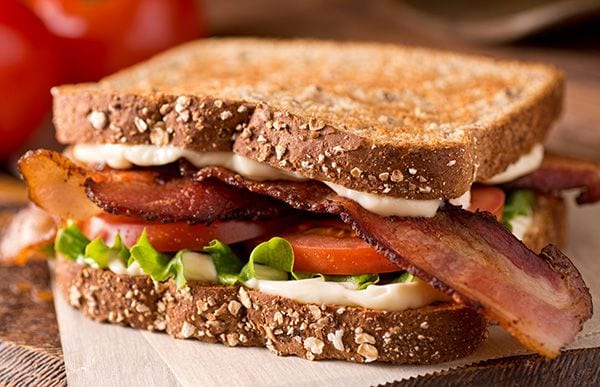 1. Πολύσπορο ψωμί του τοστ με τραγανό μπέικον, μαγιονέζα, μαρούλι και ντομάτα. Απλό και λαχταριστό!