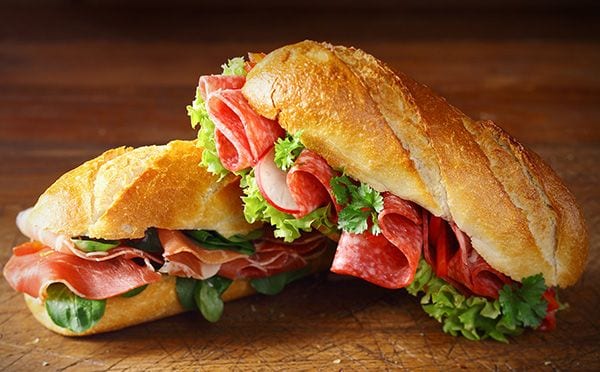 4. Λευκή μπαγκέτα με σαλάμι και μαρούλι ή με προσούτο και φύλλα βασιλικού. Για όσους αγαπούν τις πιο “εκλεπτυσμένες” γεύσεις.