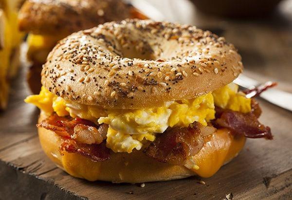 5. Bagel με τυρί τσένταρ, τραγανό μπέικον και ομελέτα. Το πρωινό σας σε ένα ψωμάκι!