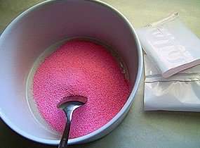 Διαλύω τη σκόνη για ζελέ στις 4 κουταλιές της σούπας νερό.