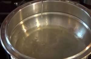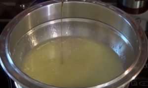 Βάζεις σε μια κατσαρόλα για να πάρουν μια βράση το νερό, τη μισή ζάχαρη το φυτικό λίπος και το χυμό λεμονιού.