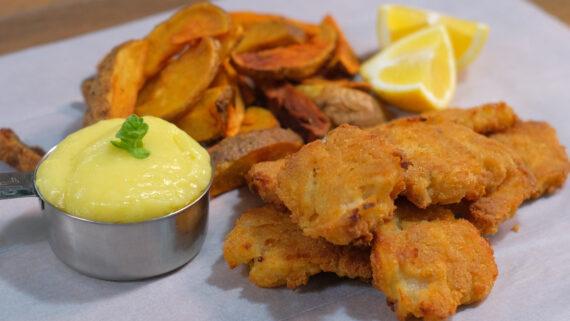 INGREDIENTS 🔪600 g desalt cod without skin and bones —————————————————- 🔪200 g bread crumb —————————————————- 🔪250 g almond milk 🔪100 g plain flour 🔪1 tsp salt 🔪1/4 tsp garlic powder 🔪1/2 tsp oregano —————————————————— 🔪800 g potatoes 🔪2 garlic cloves 🔪100 g vegetable oil 🔪100 g olive oil 🔪20 g white vinegar 🔪Juice of half lemon 🔪1 tsp salt 🔪Pepper —————————————————- 🔪Olive oil