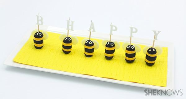 Προσθέστε λίγο τυρί κρέμα στις άκρες και τοποθετείστε στις πλάτες των μελισσών.
