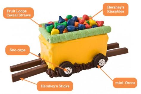 Κόβουμε και συναρμολογούμε το τρενάκι μας βάση του παρακάτω προτύπου. Στην συνέχεια χρωματίζουμε την βουτυρόκρεμα και διακοσμούμε με ότι μας αρέσει.