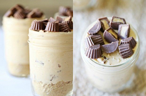 225γρ. τυρί κρέμα 1 φλιτζάνι φυστικοβούτυρο 1 φλιτζάνι ζάχαρη άχνη 1 κουταλάκια του γλυκού εκχύλισμα βανίλιας 225γρ. σπιτική σαντιγί 1 τριμμένα μπισκότα Digestive 2 κουταλιές της σούπας λιωμένο βούτυρο 1 φλιτζάνι σοκολατάκια με φυστικοβούτυρο για το topping (προαιρετικά) Τα υλικά αυτά είναι για έξι βαζάκι και η διαδικασία πολύ εύκολη. Χτύπα στο μίξερ το τυρί κρέμα, το φυστικοβούτυρο και την άχνη μέχρι να ομογενοποιηθεί το μείγμα. Έπειτα, λιώσε το βούτυρο και ανακάτεψε το με τα τριμμένα μπισκότα. Από τα μπισκότα τώρα, βάλε 4 κουταλιές της σούπας στον πάτο από κάθε βαζάκι.