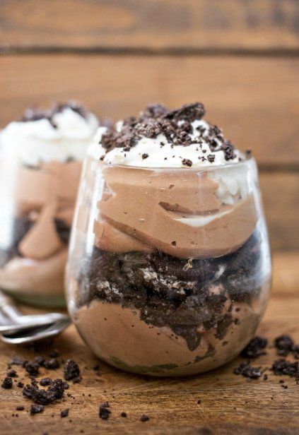 Στην συνέχεια, βάλε το μείγμα σου σε μια σακούλα για κορνέ και βάλτο στην κατάψυξη. Όταν φτάσει η ώρα να το σερβίρεις, βάλε στα βαζάκια σου στρώσεις από την κρέμα σου και τα μπισκότα Oreo και στο τέλος σαντιγί.