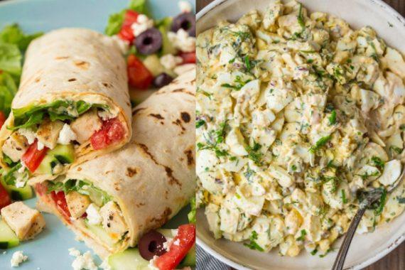 Αυγοσαλάτα με κάρυ: ανακατέψτε 2 βραστά αυγά με 2 κουταλιές της σούπας στραγγιστό γιαούρτι 2% λιπαρά και 1 κουταλιά της σούπας κάρυ σε σκόνη. Συνοδέψτε με 3 λεπτά crackers ολικής αλέσεως – 251 θερμίδες.