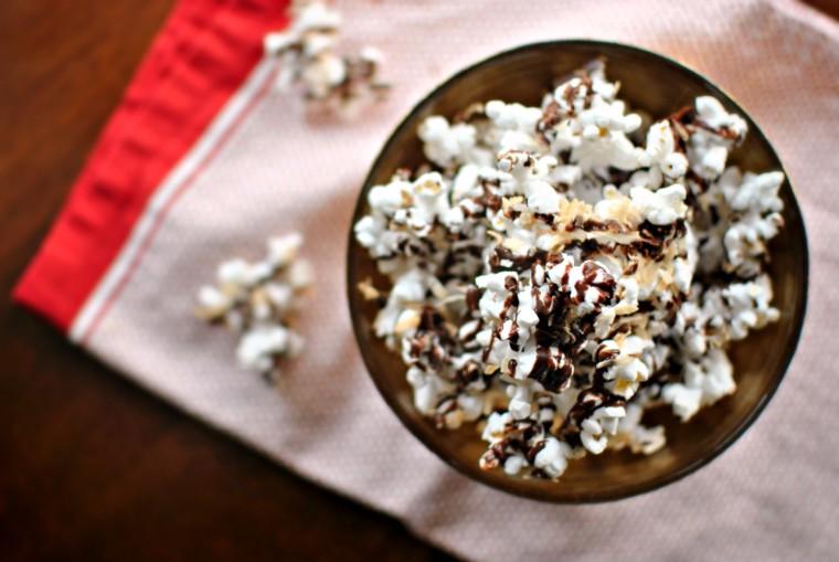 Σε μια κατσαρόλα, ρίξτε το ελαιόλαδο και ζεστάνετέ το. Προσθέστε τους σπόρους, κλείστε το καπάκι και χαμηλώστε σε μέτρια ένταση τη φωτιά. Λιώστε την κουβερτούρα σε μπεν μαρί και περιχύστε τα ποπ κορν που έχετε μεταφέρει σε ένα μεγάλο μπολ. Ανακατέψτε καλά και… έτοιμα!