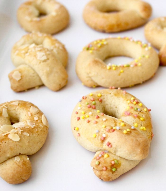 Αφήνουμε να ζυμωθούν για 3-4 λεπτά. Η ζύμη πρέπει να είμαι μαλακή, εύπλαστη, να μην κολλάει στα χέρια και να μην είναι ελαστική. Τυλίγουμε τη ζύμη με μεμβράνη και την βάζουμε στο ψυγείο για 1 ώρα. Βγάζουμε τη ζύμη από το ψυγείο και πλάθουμε τα κουλουράκια σε διάφορα σχέδια. Τοποθετούμε τα κουλουράκια σε ένα ταψί με λαδόκολλα και τα αλείφουμε με ένα αυγό χτυπημένο με λίγο νερό.