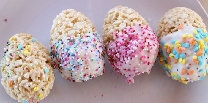Ζεστάνετε τη σοκολάτα σε χαμηλή φωτιά μέχρι να λιώσει, ανακατεύοντας συνεχώς. Βουτήξτε το κάτω μέρος των αυγών από δημητριακά στη λευκή σοκολάτα. Διακοσμήστε με χρωματιστή τρούφα. Τοποθετήστε τα σε αντικολλητικό χαρτί ψησίματος. Βάλτε τα στο ψυγείο μέχρι να στερεοποιηθεί η σοκολάτα.