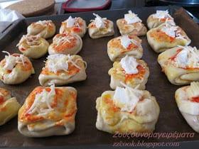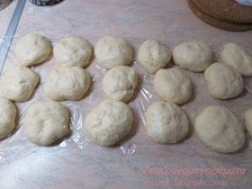 Χωρίζουμε τη ζύμη σε μπαλάκια όσο ένα μανταρίνι, τα λαδώνουμε με λίγο λαδάκι και τα αφήνουμε 15 λεπτά να ξεκουραστούν όσο ετοιμάζουμε τα υλικά που θα γεμίσουμε.