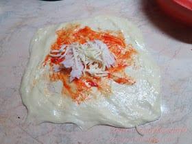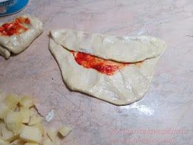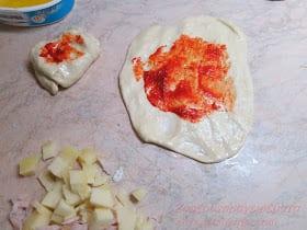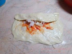 Για τη γέμιση: σάλτσα ντομάτας η σάλτσα πιπεριάς λίγες κουταλιές, δεν θέλουν πολύ. τυρί τριμμένο ότι τυράκι έχουμε εγώ έβαλα μοτσαρέλα και ανθότυρο μπορείτε να βάλετε μπέικον λουκάνικο φέτα ότι έχουμε στο ψυγείο…